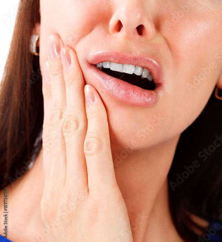 Closeup shot of beautiful young woman suffering from toothache