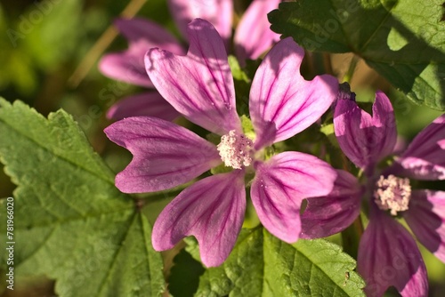 Closeup shot of common mallow (Malva sylvestris) flowers