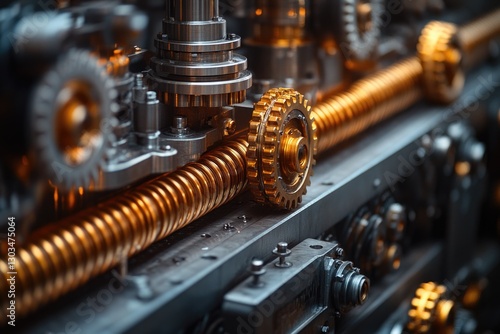 Close-up shot of industrial machinery parts with visible gears and mechanisms