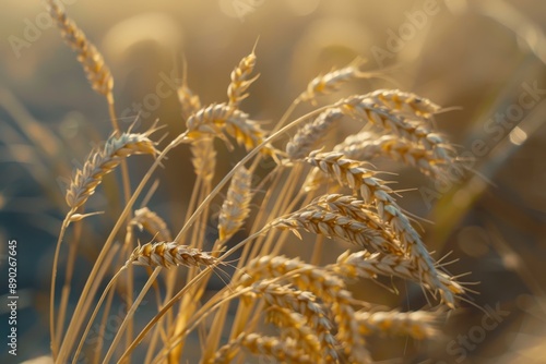 Close-up shot of wheat heads swaying gently in the golden light of a sunset