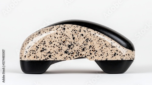 Close-Up Side Profile of a Smooth Beige-and-Black Speckled Futuristic Object Resembling a Car or Hand-Held Device on a Stark White Background