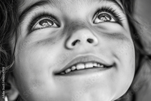 Closeup smile of happy adorable toddler with sparkling eyes and first baby teeth showing innocence and joy, generative ai