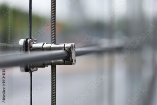 Closeup Stainless fasteners elements of glass curtain walls system.