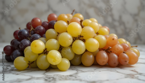 Closeup Still Life of Colorful Grapes on Marble Surface