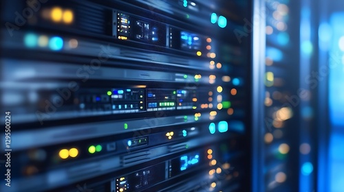 Closeup view of a data server rack filled with colorful lights displaying technology and innovation : Generative AI