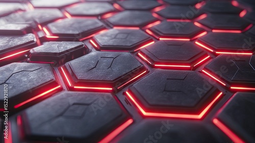 Close-up view of a hexagonal grid pattern with glowing red lines.
