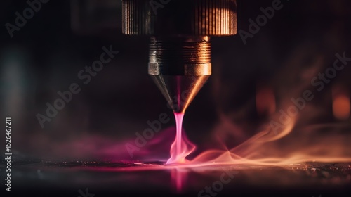 Close-up view of a laser cutting process creating vibrant sparks and smoke in a workshop environment