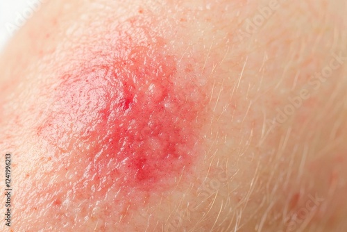 Close-up view of a skin rash exhibiting redness and irritation, emphasizing possible allergic reactions or various skin conditions such as eczema, dermatitis, or psoriasis