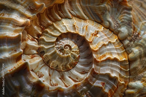 Close-up view of a stunning nautilus shell exhibiting intricate patterns and natural colors, highlighting the beauty of marine life found in coastal waters