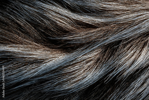 Close-up view of a textured, dark gray and brown fur.