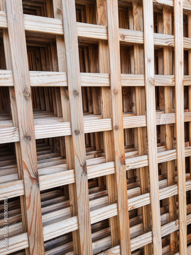 Close-up View of a Wooden Lattice Fence