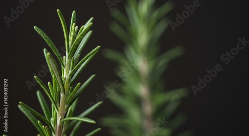 Close-up view of aromatic rosemary herb with vibrant green leaves against dark background, perfect ingredient for culinary and aromatherapy