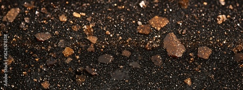Close-up View Of Brown And Black Granite Surface With Speckled Appearance And Light Reflections