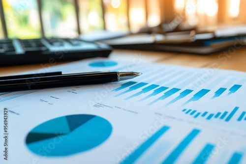 Close-up view of business graphs and statistics on a desk, illustrating analysis and financial planning for professionals.