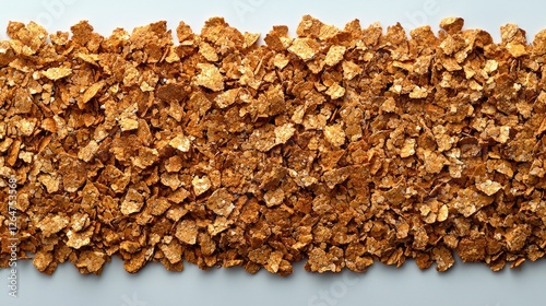 Close-up view of golden-brown cereal flakes arranged neatly on a light surface