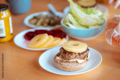Closeup view of home make hamburger