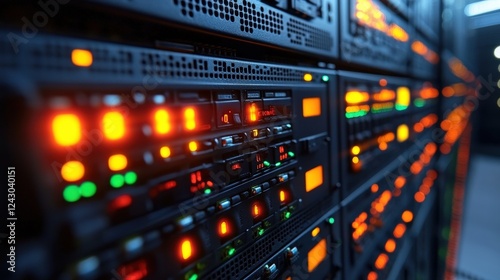 Close-up view of illuminated server racks in a data center showcasing technology in action (14)
