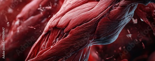 Close-up view of intricate human muscle tissue, showcasing detailed textures and vibrant colors, ideal for educational and artistic projects.