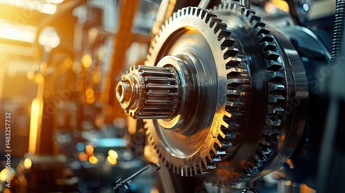 Close-up view of intricate industrial gears in a manufacturing facility.