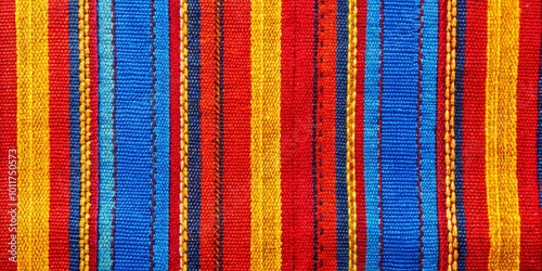Close-up View of Multicolored Woven Stripes - Red, Yellow, and Blue Threads - Textile Texture, Woven Fabric, Texture Background Woven Fabric, Texture Background, Textile Texture