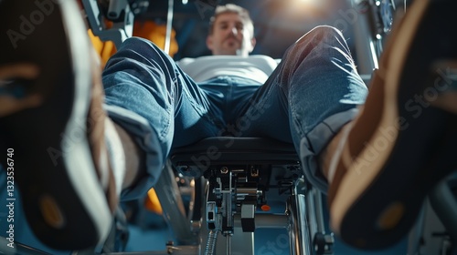 Close-Up View of Person Exercising on Leg Press Machine at Gym