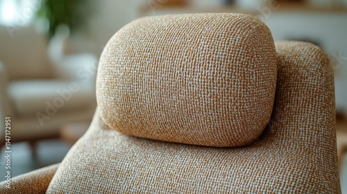 Close-up view of soft fabric on a mocha ergonomic office chair headrest