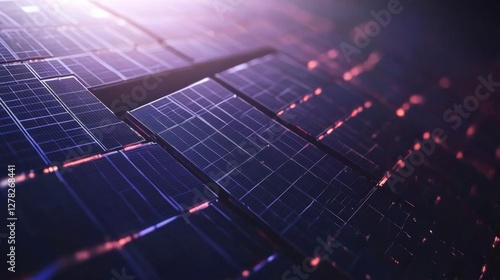 Close-up view of solar panels reflecting light, showcasing modern renewable energy technology