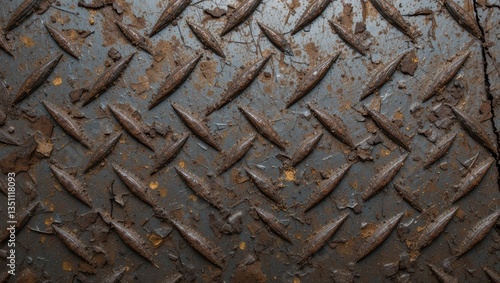 Close-Up View of Textured Muddy Tire Tread Pattern on Dark Surface