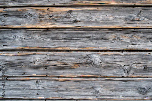 Close-up view of weathered wooden planks showcasing natural textures and grain patterns, ideal for rustic themes