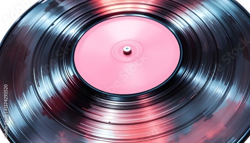 Close-up Vinyl Record Pink Label Retro Music Background