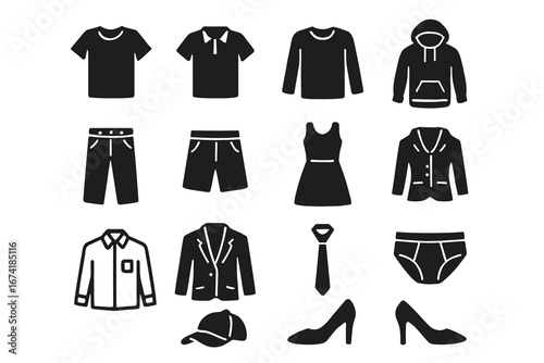 Clothing icons collection: shirts, jackets, dresses, and accessories
