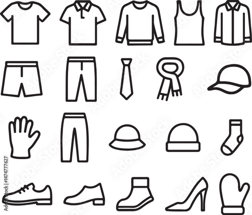 Clothing Outline Icon Set 20 Minimal Fashion and Apparel Line Vector Icons