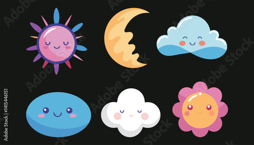 Cloud Abstract Set - White Cloudy Vector Illustration Isolated on Blue Background
