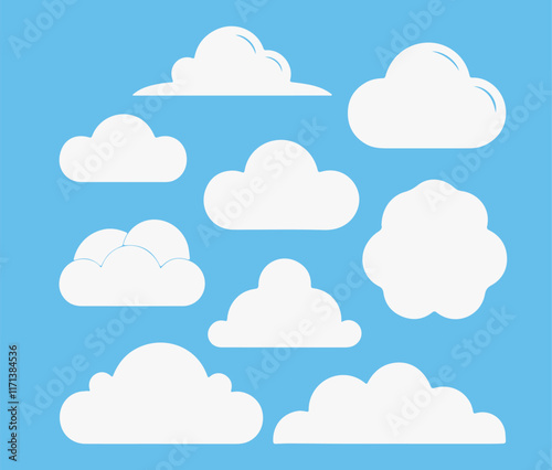 Cloud. Abstract white cloudy set isolated on blue background. Vector illustration