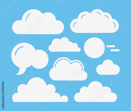 Cloud. Abstract white cloudy set isolated on blue background. Vector illustration