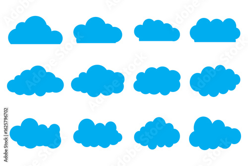 Cloud. Abstract white cloudy set isolated on blue background. Vector illustration
