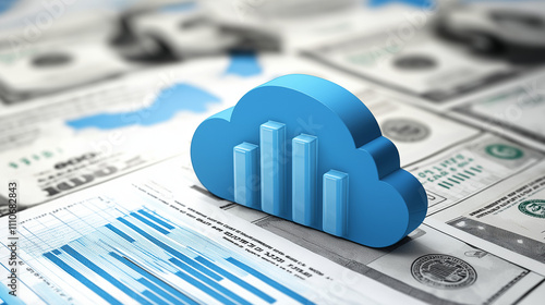 Cloud and graphs symbolize cloud budgeting and financial analytics.