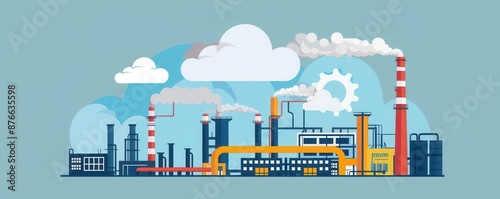 Cloud computing, industrial data integration via cloud, flat design illustration