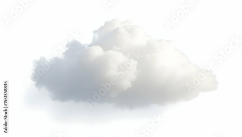 Cloud Fluffy oval cloud with shadowed base and bright highlights, isolated on a clean white background