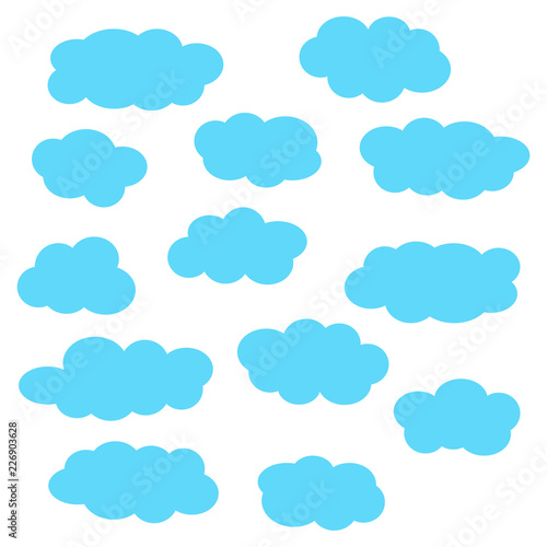 Cloud icon set, blue clouds isolated on white background, vector illustration.
