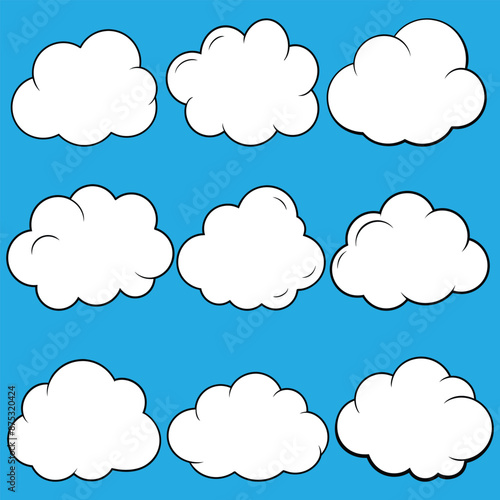 Cloud icon Set. Clouds silhouettes. Vector set of clouds shapes. Collection of various forms and contours. Design elements for the weather forecast, web interface or cloud storage applications.