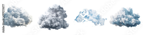 Cloud isolated on a transparent background - Featuring a fluffy, white cumulus cloud with soft, rounded edges - Clean and detailed composition with even lighting - Studio photography highlighting the