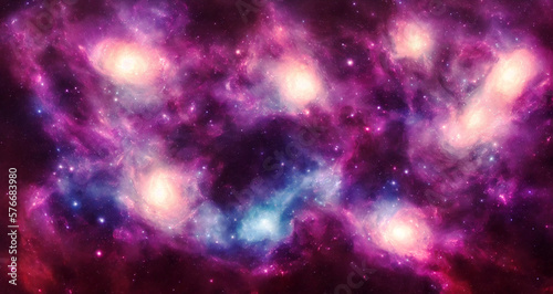 Cloud of distant galaxies. Colorful fantastic illustration of space. Generative AI.