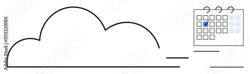 Cloud outline beside a marked calendar showcasing organization and planning. Ideal for productivity, cloud computing, project management, scheduling, time management, digital tools, flat simple