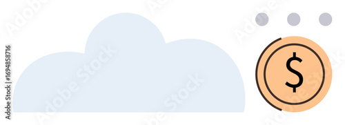 Cloud shape beside orange circle with dollar sign. Ideal for technology, data storage, finance, cloud services, online business, savings, cost efficiency. Simple flat metaphor