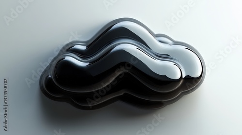 Cloud Silhouette: A glossy, dark cloud silhouette appears, the curves and shadows creating a sleek and modern design, suggesting digital, data, or technology themes.