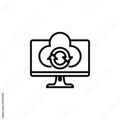 Cloud sync on a computer, synchronization outline icon. Vector illustration. The isolated icon suits the web, infographics, interfaces, and apps.