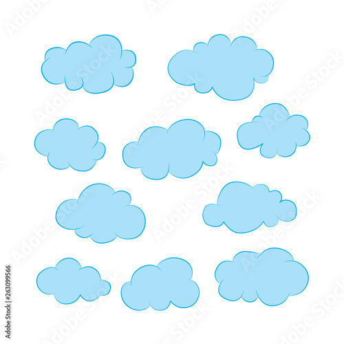 Clouds. Different cartoon style clouds illustrations set isolated on white background.