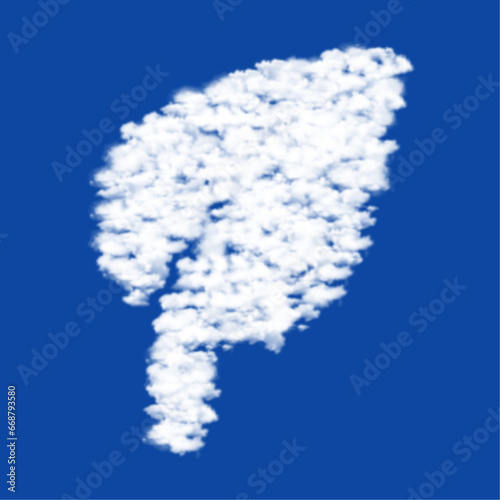 Clouds in the shape of a leaf symbol on a blue sky background. A symbol consisting of clouds in the center. Vector illustration on blue background