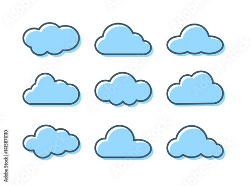 Clouds line icons vector set. Flat weather symbols with dark outline.